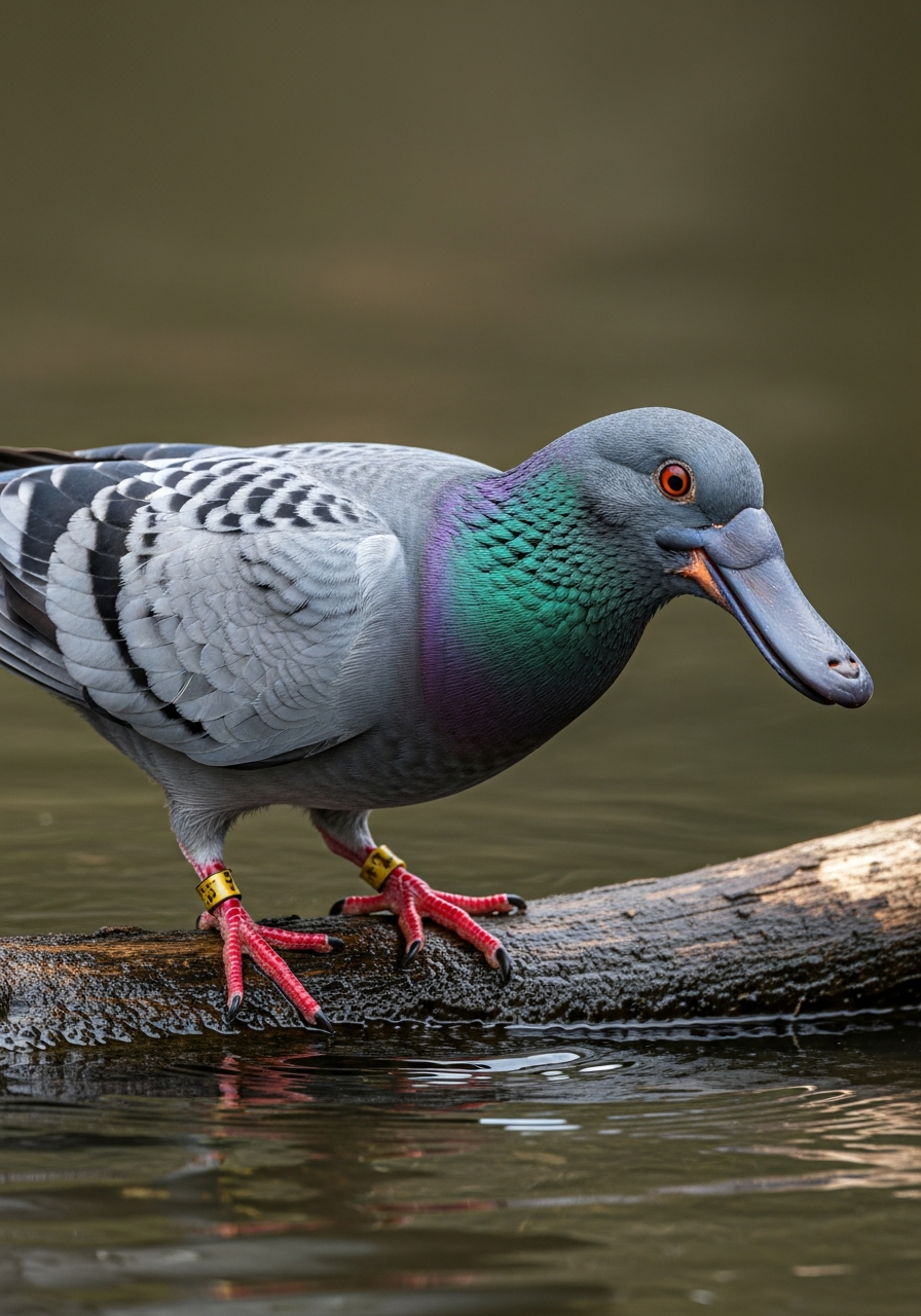 A result of convergent evolution where pigeon populations adapted traits of platypuses due to similar dietary needs and environmental pressures in shared aquatic habitats.