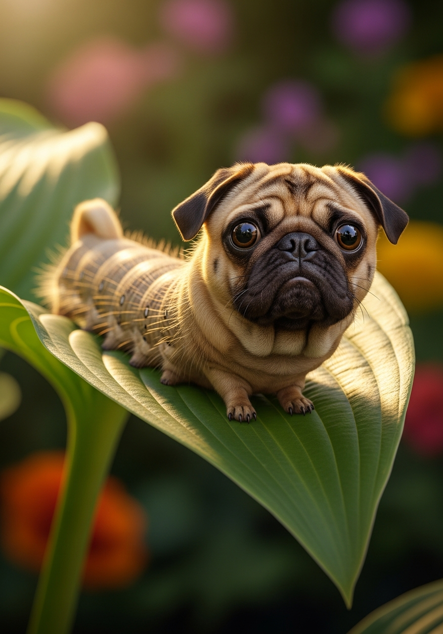 Caterpillar-like segmented body with the head and personality of a pug.