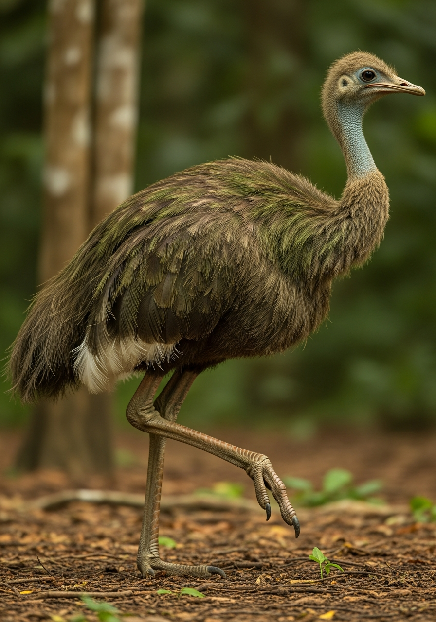Despite its ostrich heritage, it prefers to hang upside down from trees, only venturing to the ground when absolutely necessary.